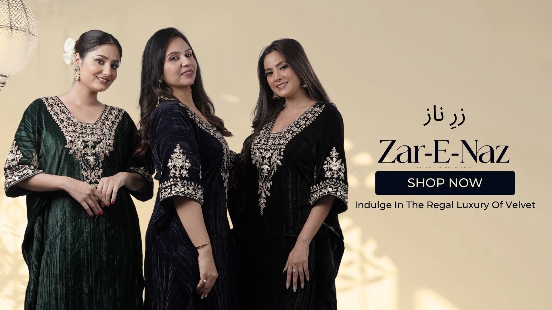 Gulnaaz Silk Velvet Gota Embroidered Kaftan With Plazzo